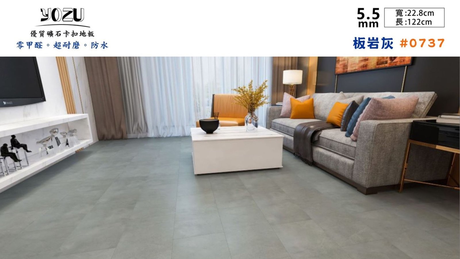 首頁 » 各式商品展示 » 地板 » SPC石塑地板 » YOZU優の質 » YOZU優の質-石紋系列0737板岩灰