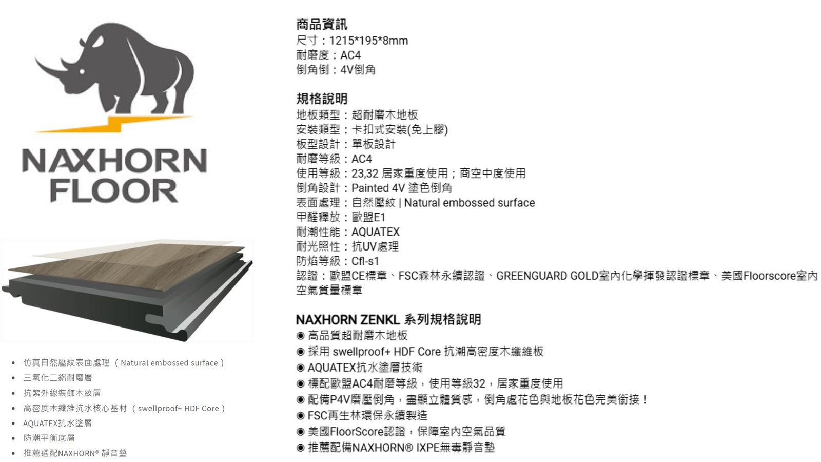 耐磨等級:AC4